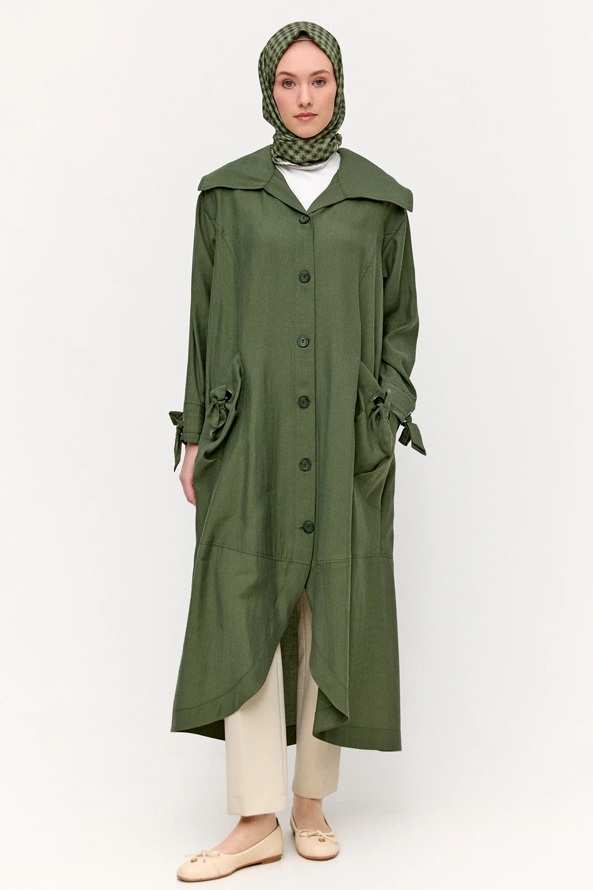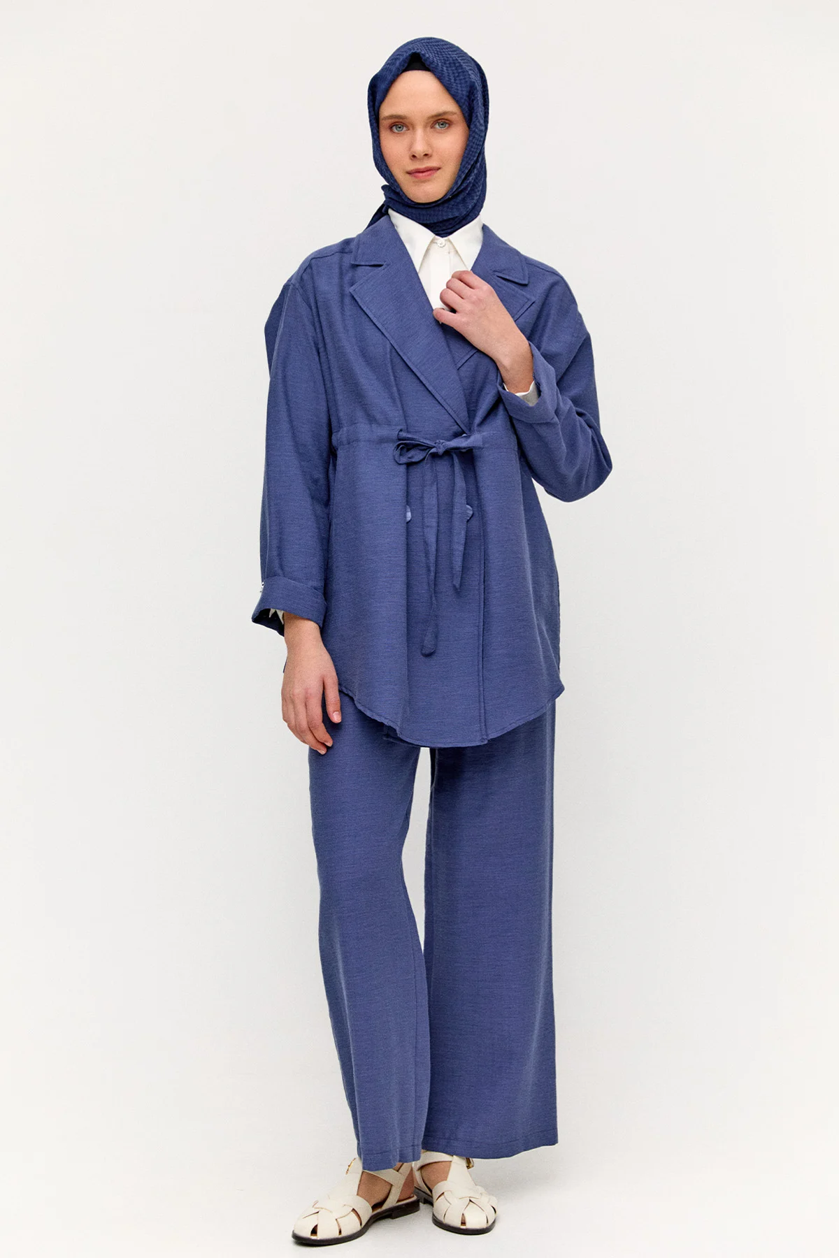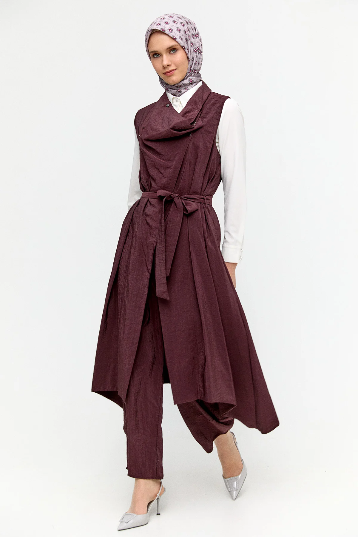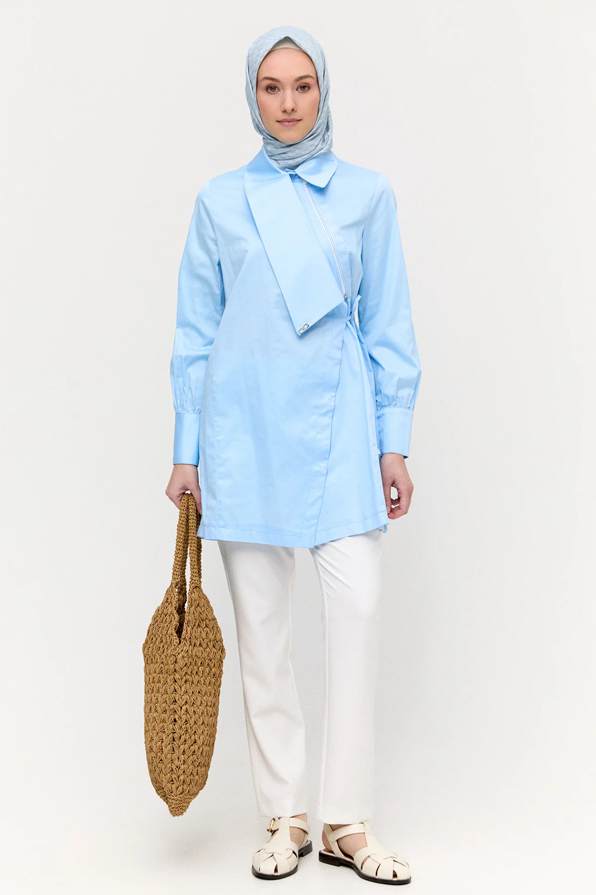 Asimetrik Yakalı Kuşaklı Pamuk Tunik