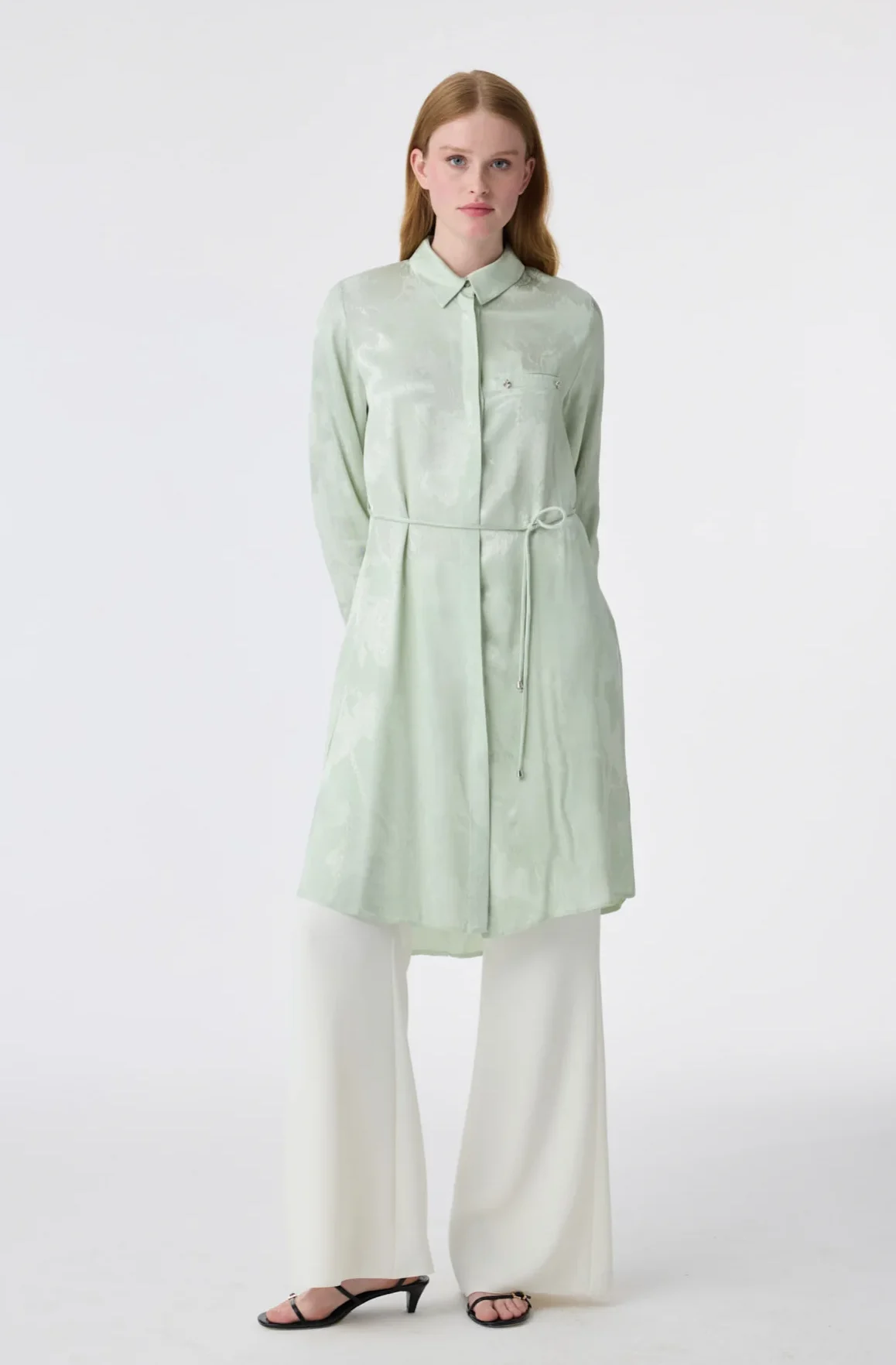Asimetrik Yakalı Kuşaklı Pamuk Tunik