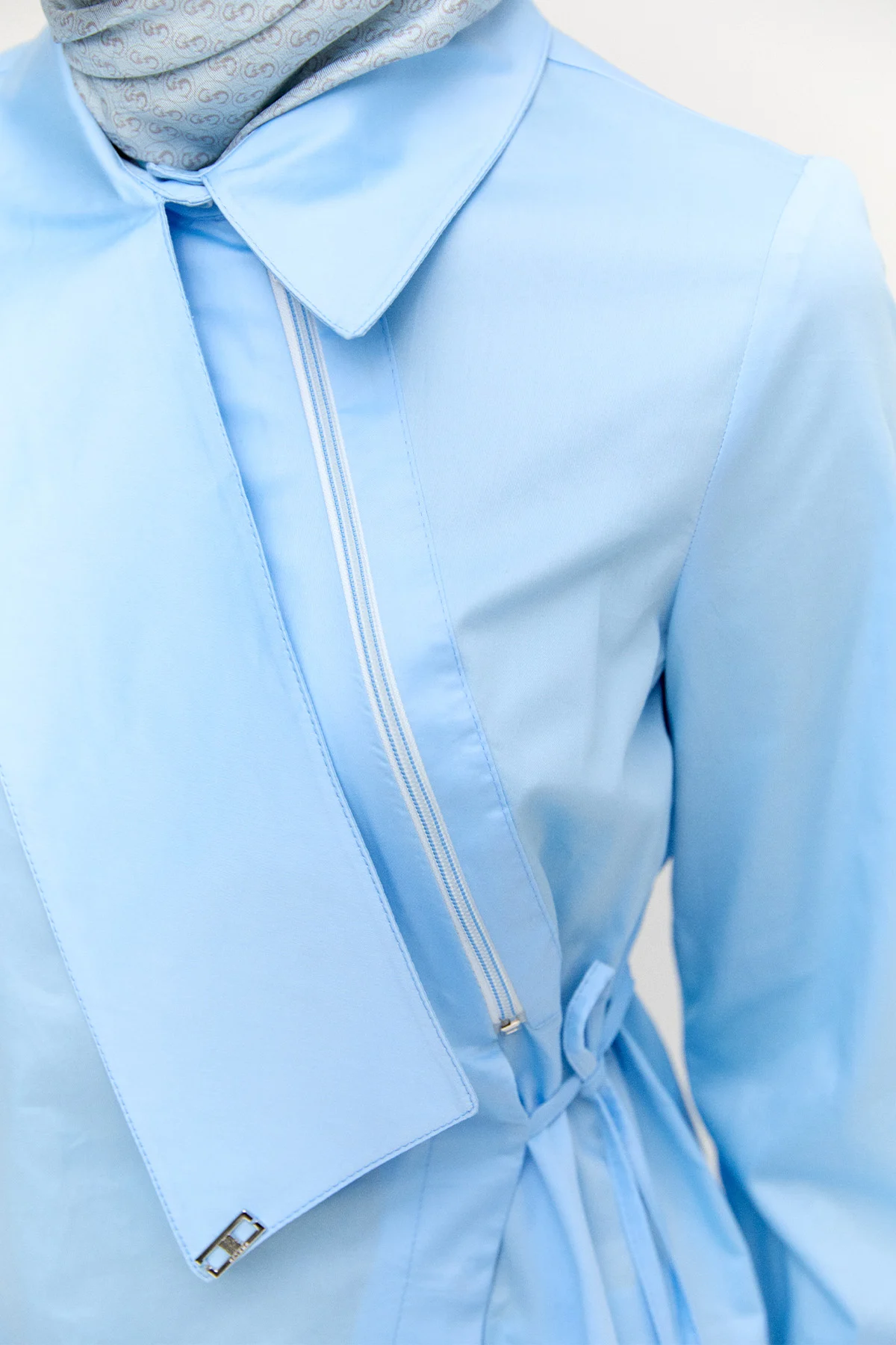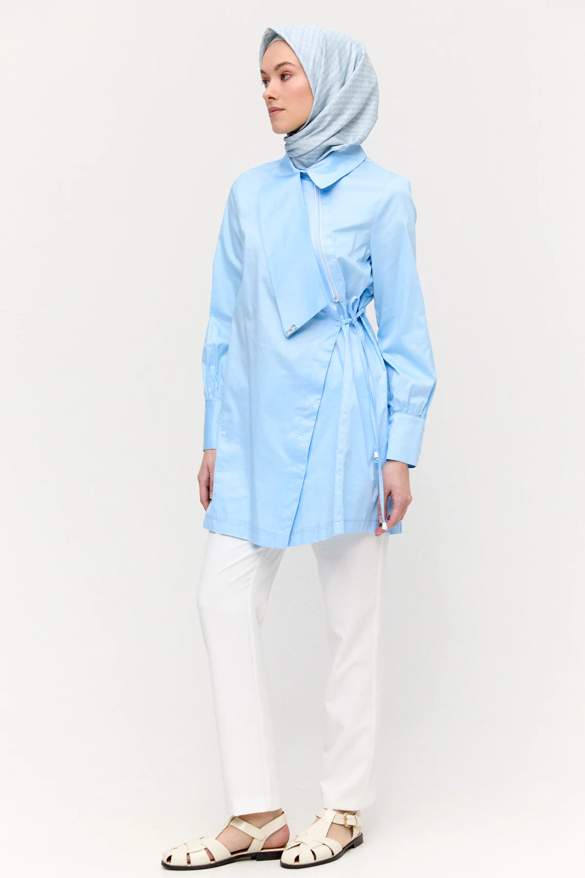 Asimetrik Yakalı Kuşaklı Pamuk Tunik
