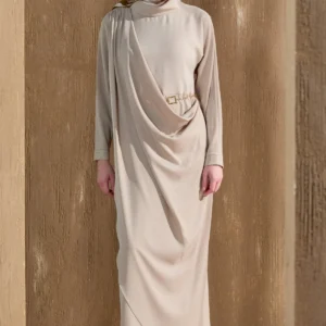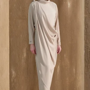850161 Asimetrik Drapeli Krep Elbise